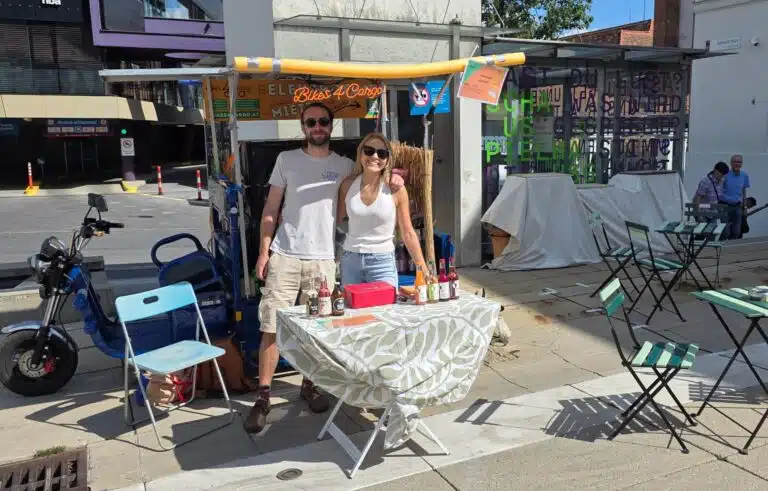 Die solarbetriebene Lastenradbar wird die Gäste mit kühlen Getränke, die nur mit der Kraft der Sonne gekühlt wurden, versorgen. Zusätzlich gibt es auch noch eine regionale Auswahl an Säften und Most aus der Oststeiermark.